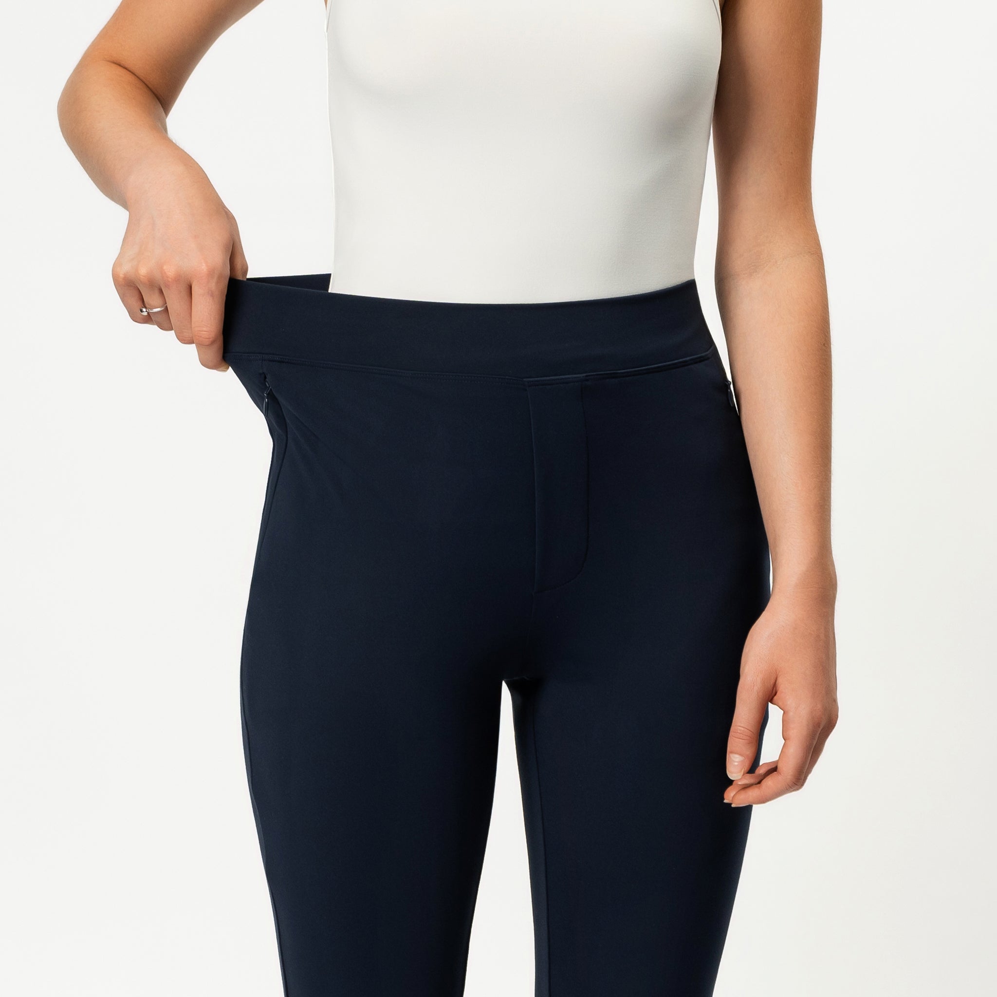 Creating a comfortable, non-digging, minimal waistband was key for these pants. We tested multiple designs—elastic-cased, stable front with elastic back, and more. After extensive sampling, the centrefold no-seam folded waistband emerged as the best, relying on the base fabric’s stretch to maximize comfort.