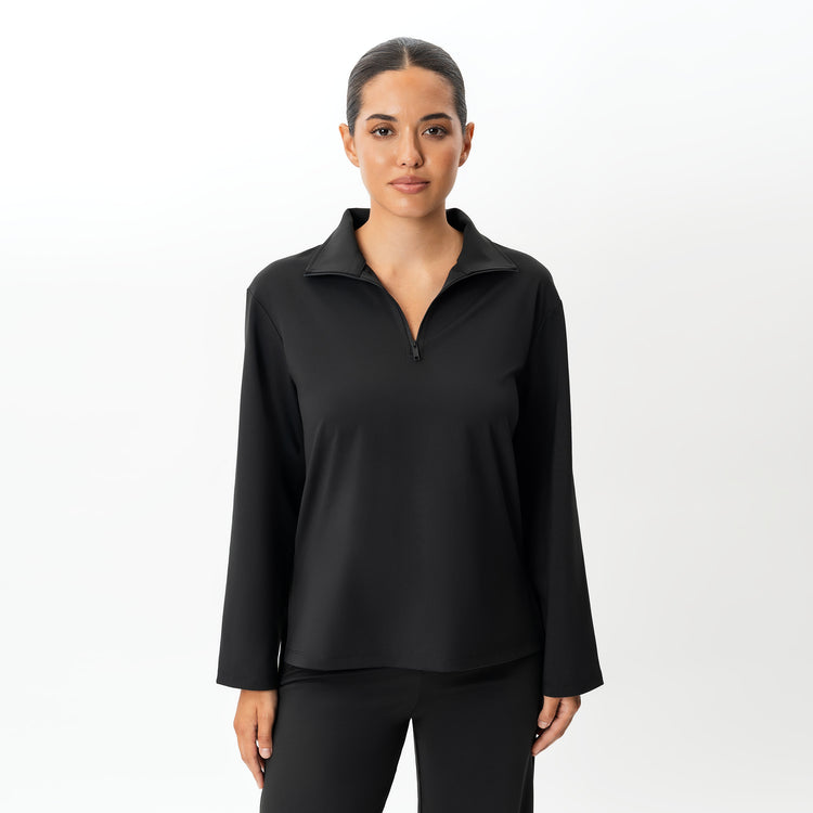 A versatile, relaxed-fit long-sleeve top designed for effortless comfort at home or on the go. The clean crew neck with a bounded finish adds a refined touch, making it simple to dress up or down.