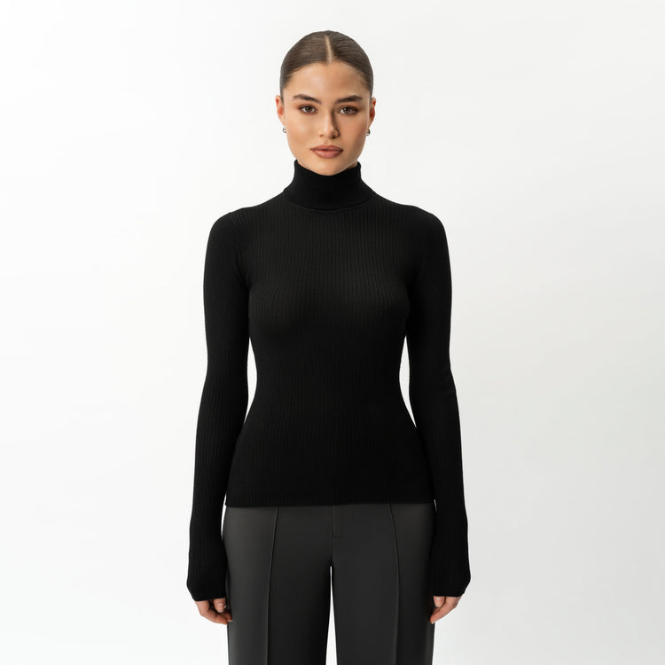 Merino Wool Ribbed Turtleneck