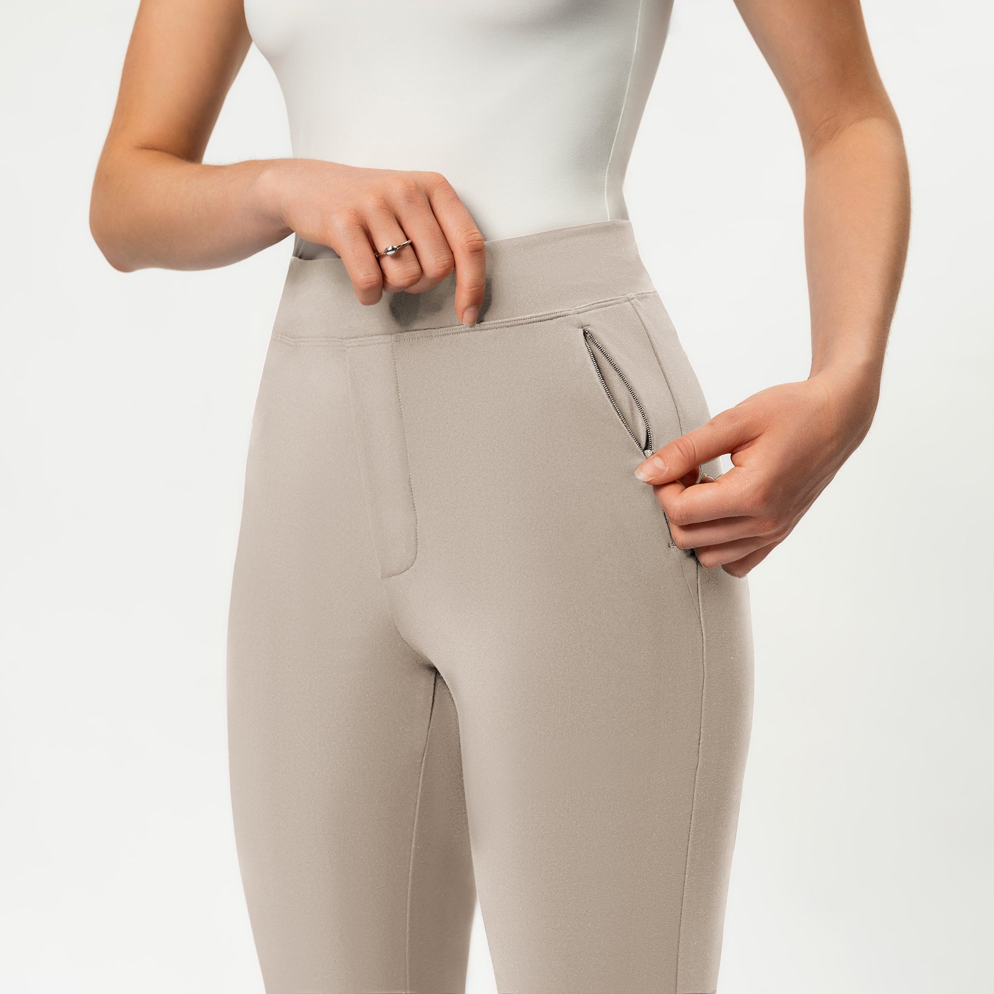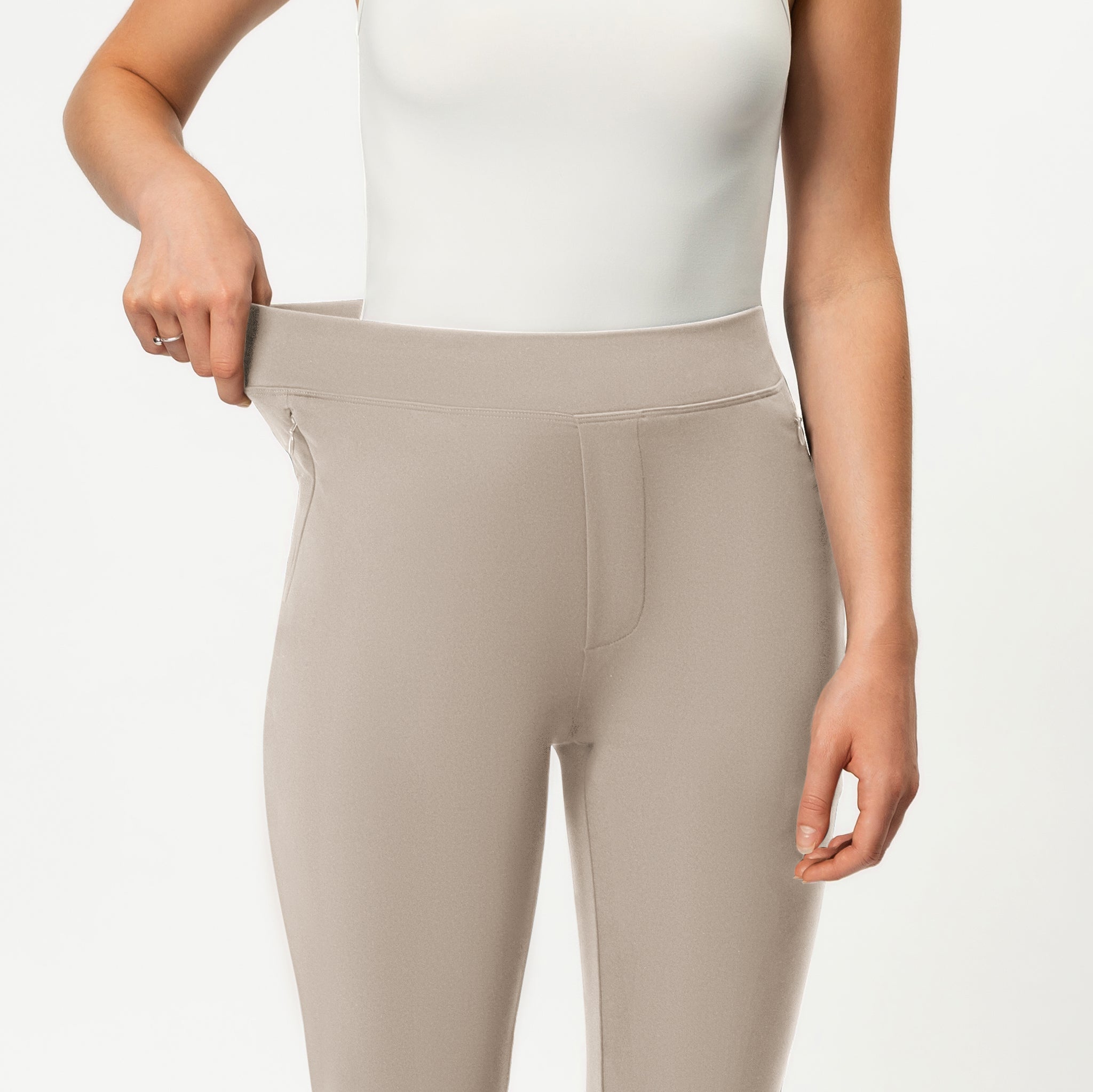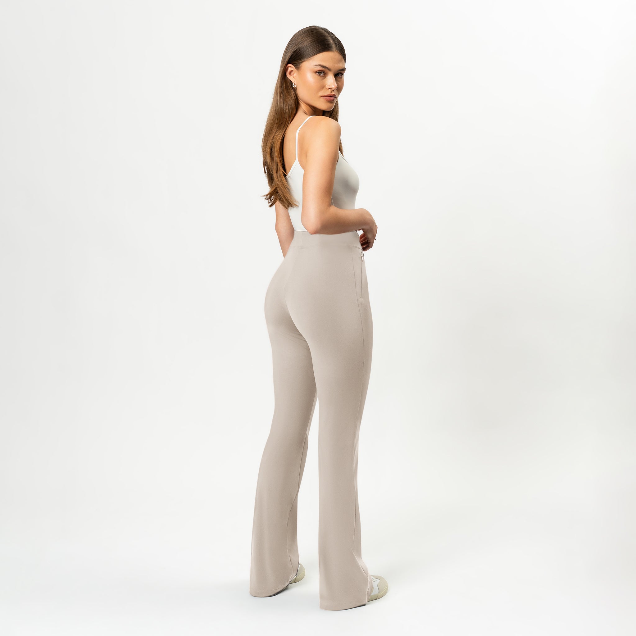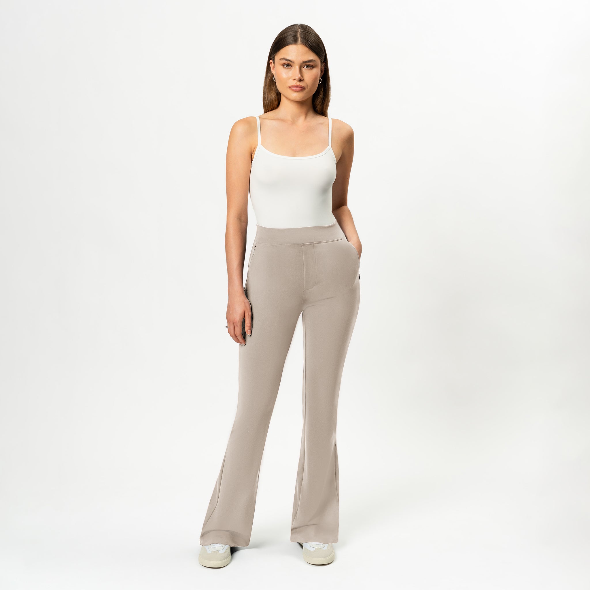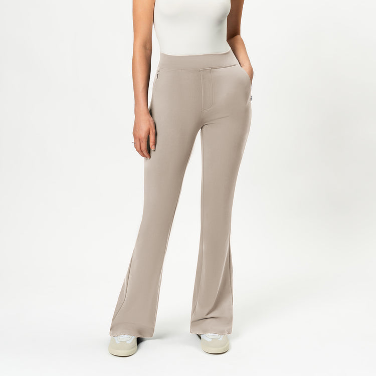 Introducing the Asana Bootcut Pants – the ultimate "everything" pants. Featuring a flattering bootcut silhouette, these pants are fitted through the hips and thighs and flare out from the knee down. They come with discreet zip pockets, a high centerfold waist, and are crafted from soft brushed activewear knit. Perfect for casual outings, work, dance, travel, and lounging, these pants are your go-to for comfort and style every day.