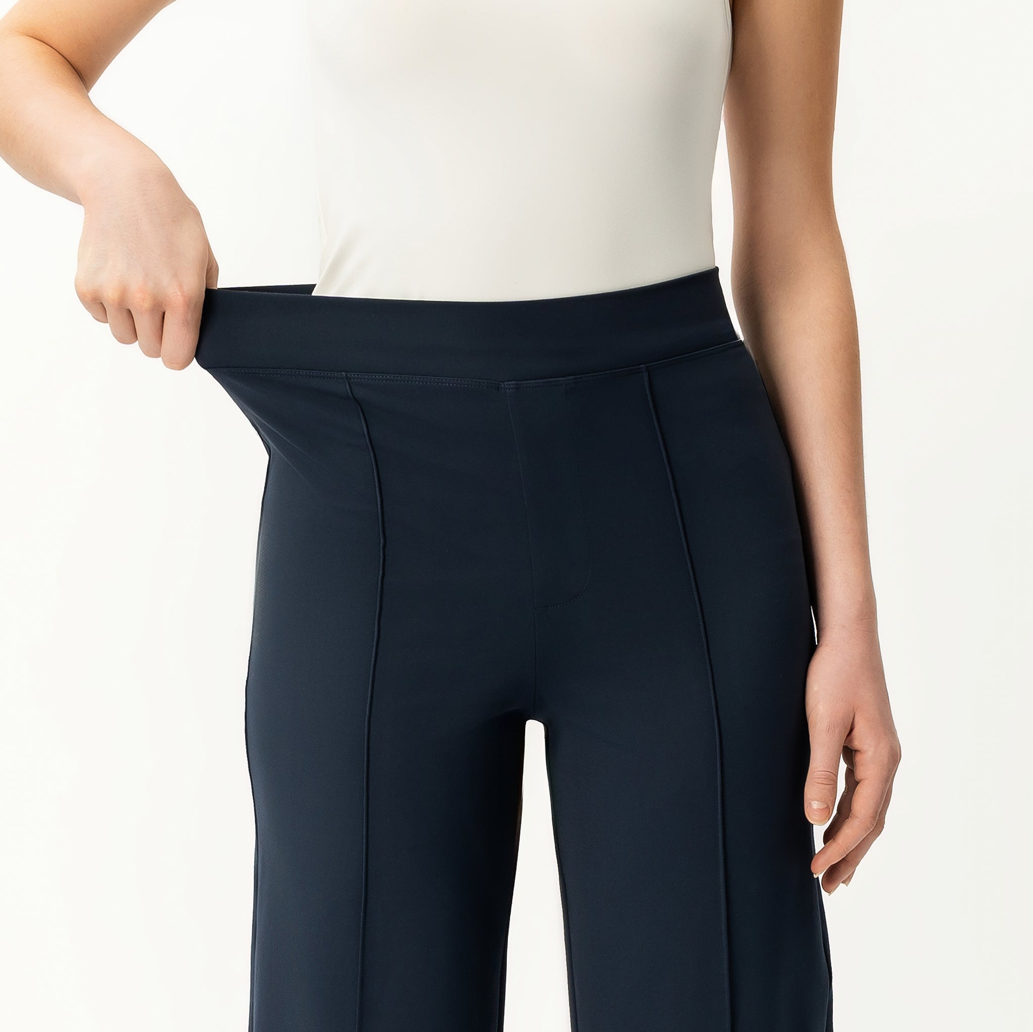 These peach soft "wear-for-everything" pants are tailor-inspired trousers re-imagined with all the comforts of activewear. They are designed with a relaxed & straight fit, a high centrefold waist and using a soft brushed activewear knit. They're ideal for everyday casual outfits, work, dance, travel and lounging.
