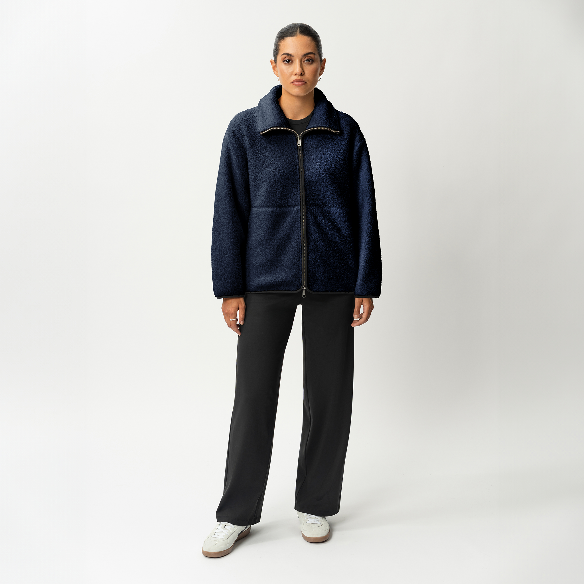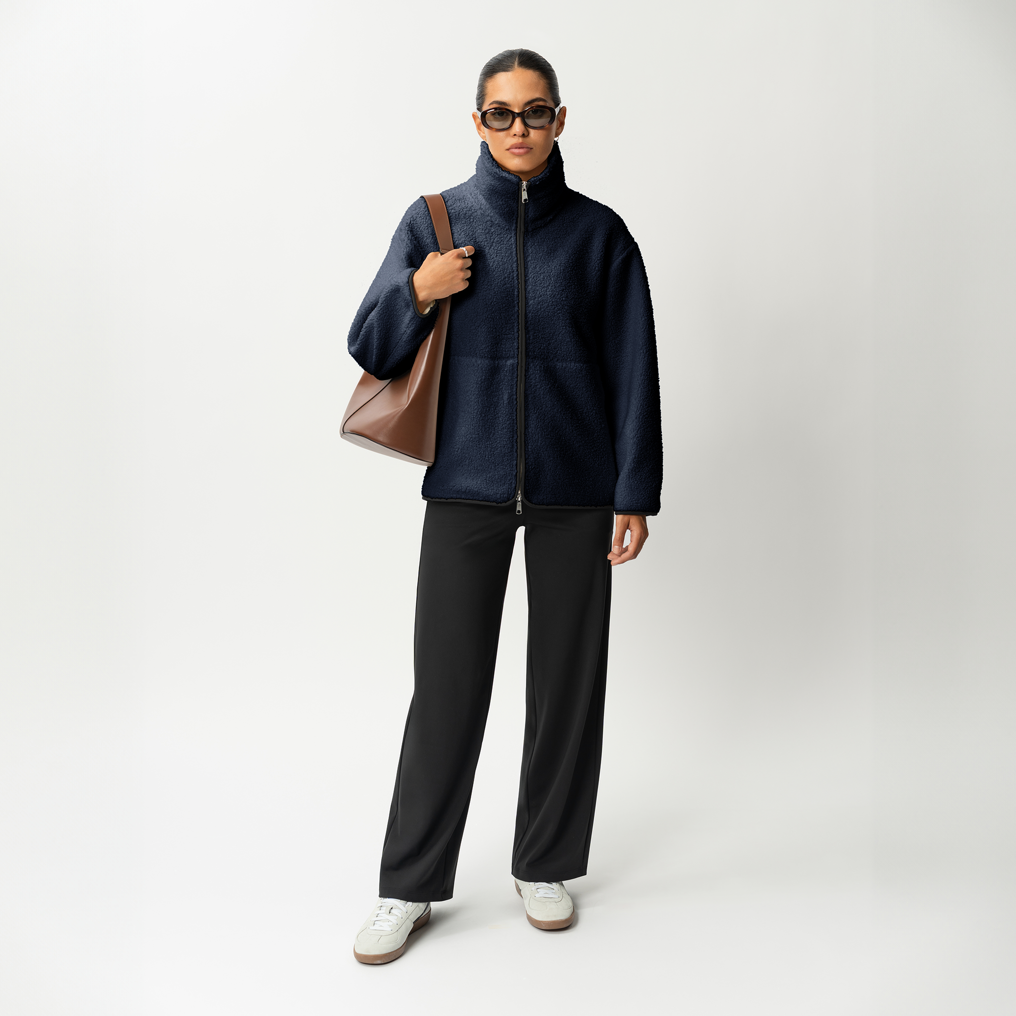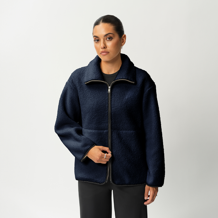 Experience the luxury of comfort with Ninepine's versatile fleece jacket that combines elegance with practicality. This cold weather staple has thoughtful details such as hidden pockets, 2-way zipper and soft fleeced lining that makes it a perfect addition to your capsule wardrobe. Dress up or down, the relaxed fit and dropped shoulder design provide a comfortable, yet sophisticated look.