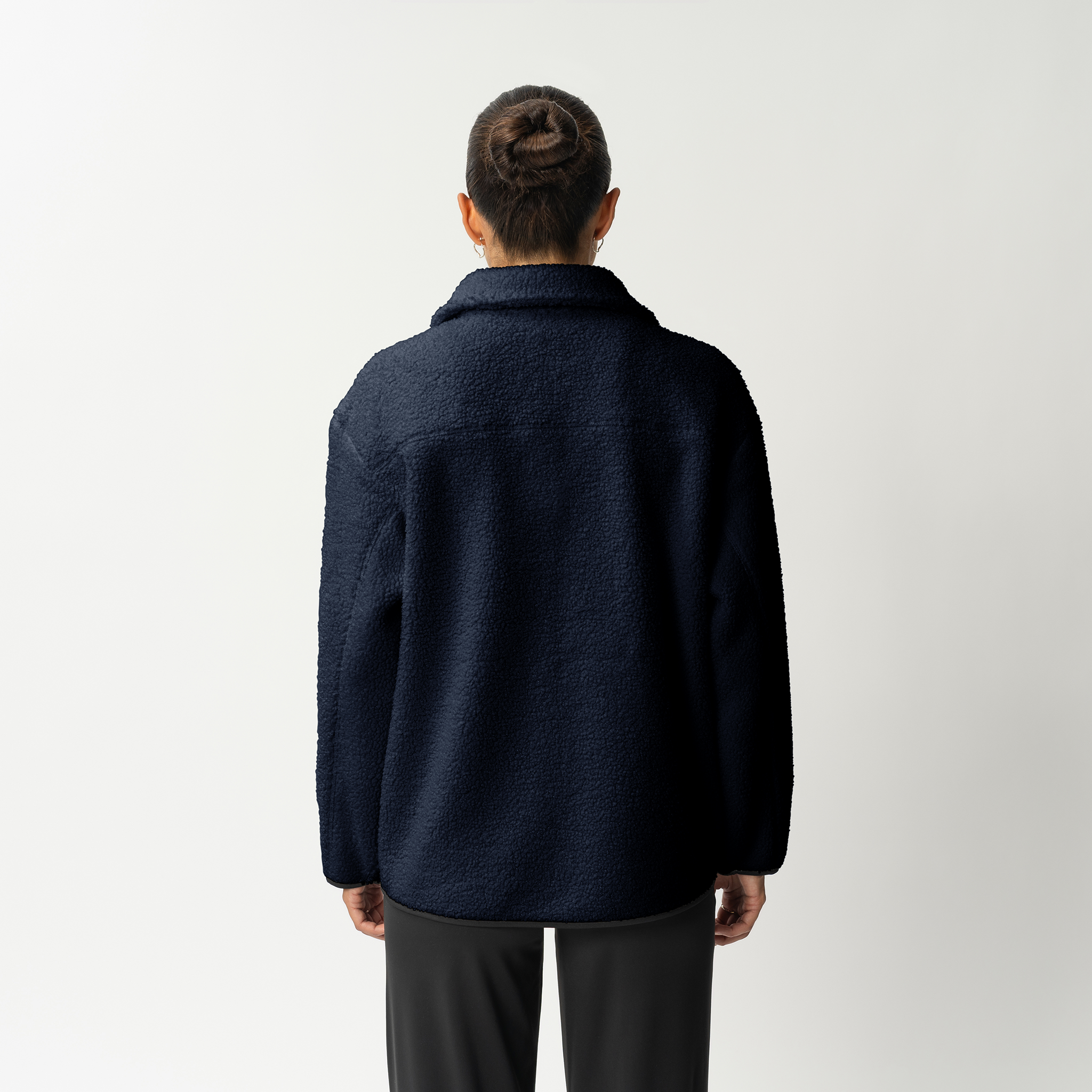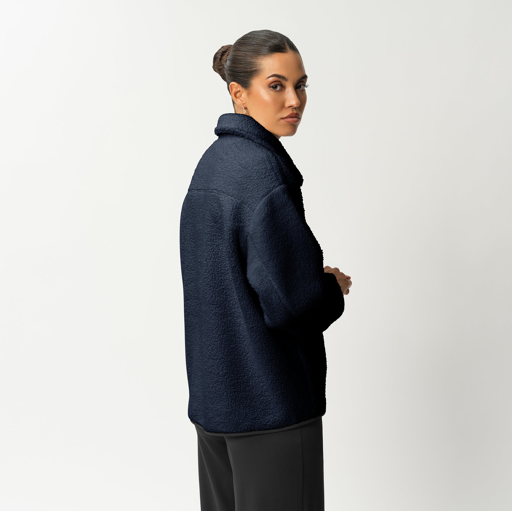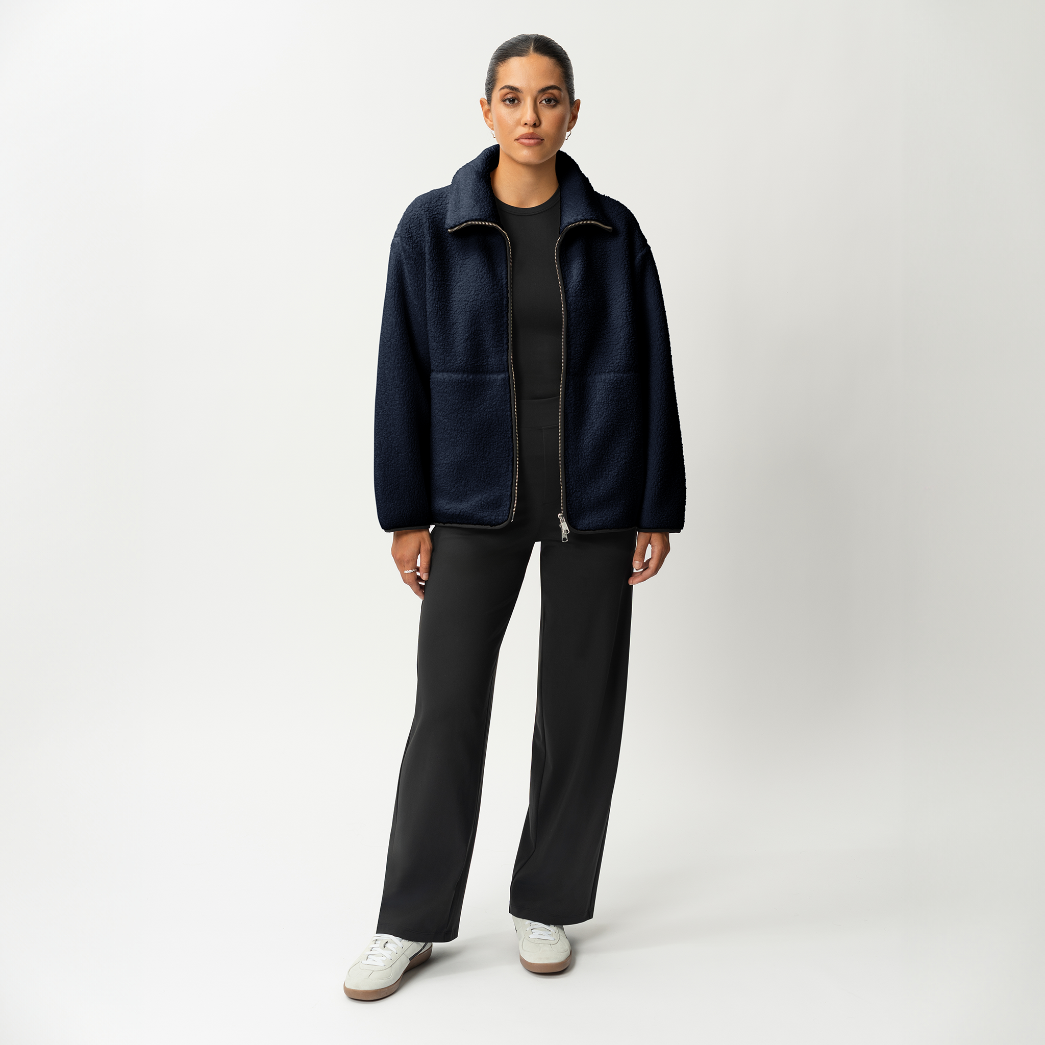 Experience the luxury of comfort with Ninepine's versatile fleece jacket that combines elegance with practicality. This cold weather staple has thoughtful details such as hidden pockets, 2-way zipper and soft fleeced lining that makes it a perfect addition to your capsule wardrobe. Dress up or down, the relaxed fit and dropped shoulder design provide a comfortable, yet sophisticated look.