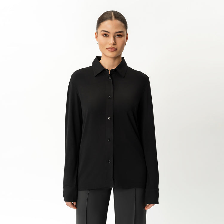 A modern take on the classic button-down. Made from a smooth, soft and breathable LENZING™ Modal jersey with added stretch, this shirt drapes softly and moves with you. Designed with a relaxed fit, traditional collar, and buttoned sleeve vents, this shirt is smart enough to wear out and soft enough to wear in.
