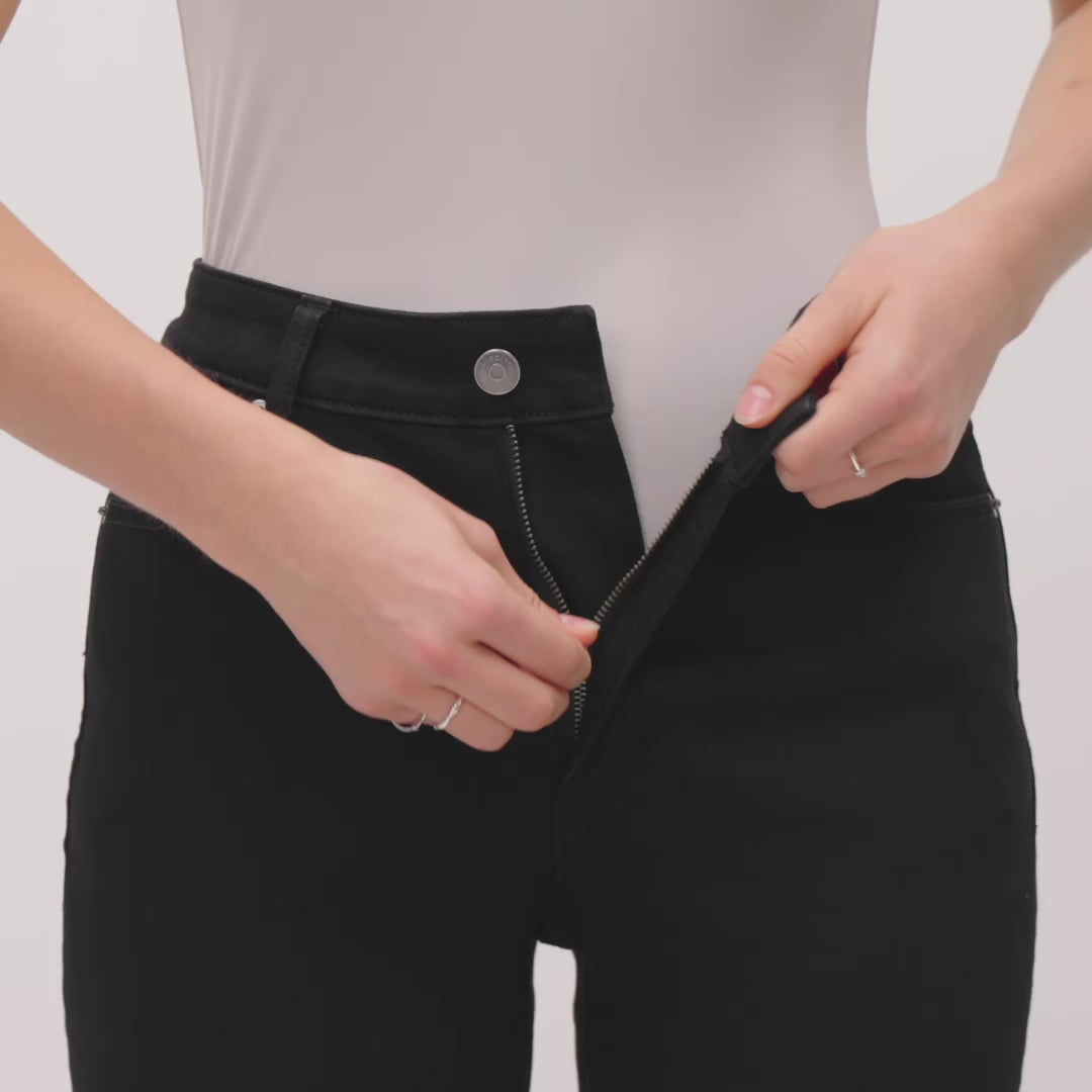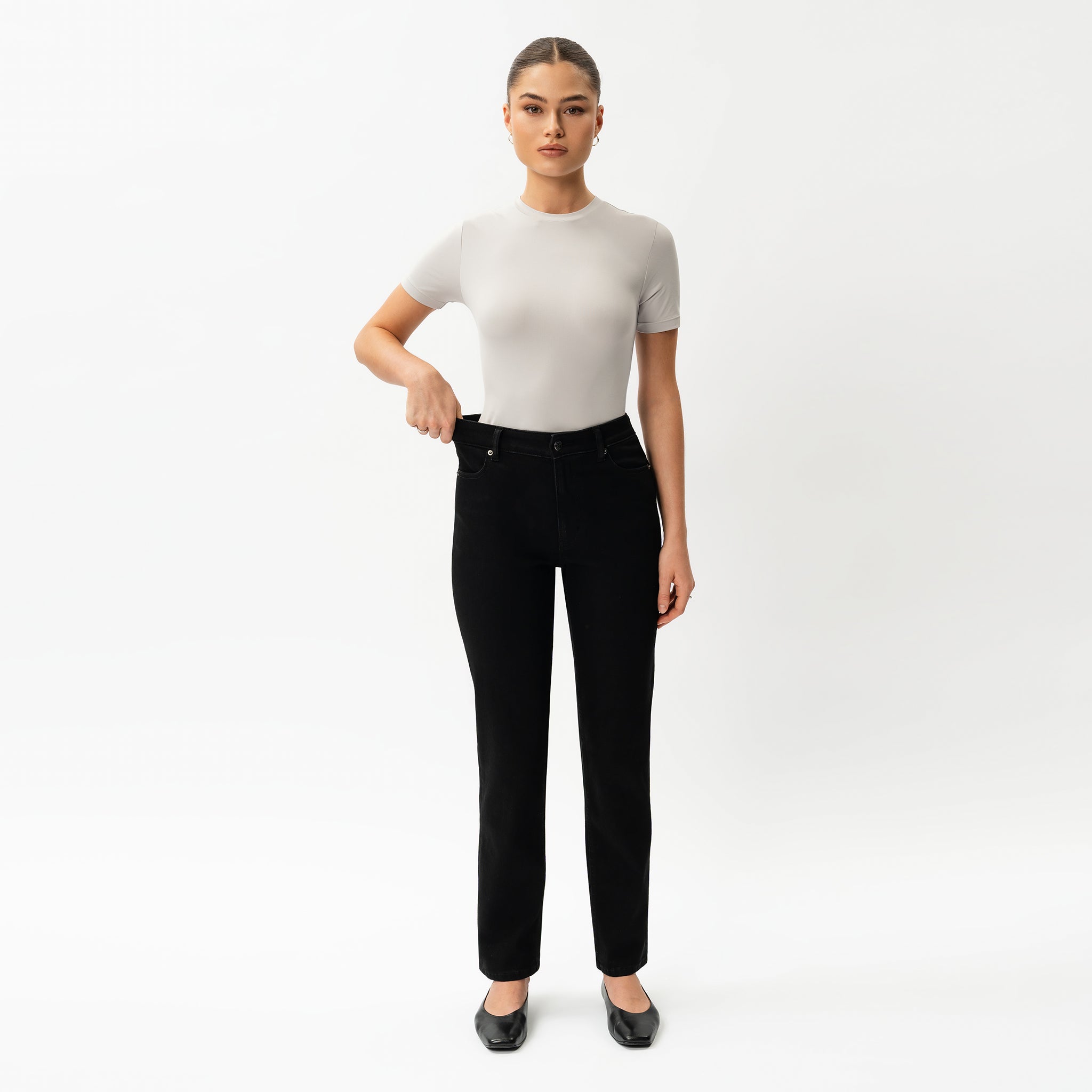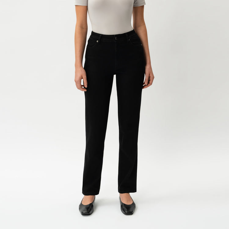 Experience the classic look of denim with the comfort of incredible stretch. Our high-waisted, straight-leg jeans are crafted from a proprietary denim blend that’s both very stretchy and thick, providing the feel of traditional denim with added flexibility. Versatile and perfect for everyday wear, these jeans are a must-have in your capsule wardrobe.