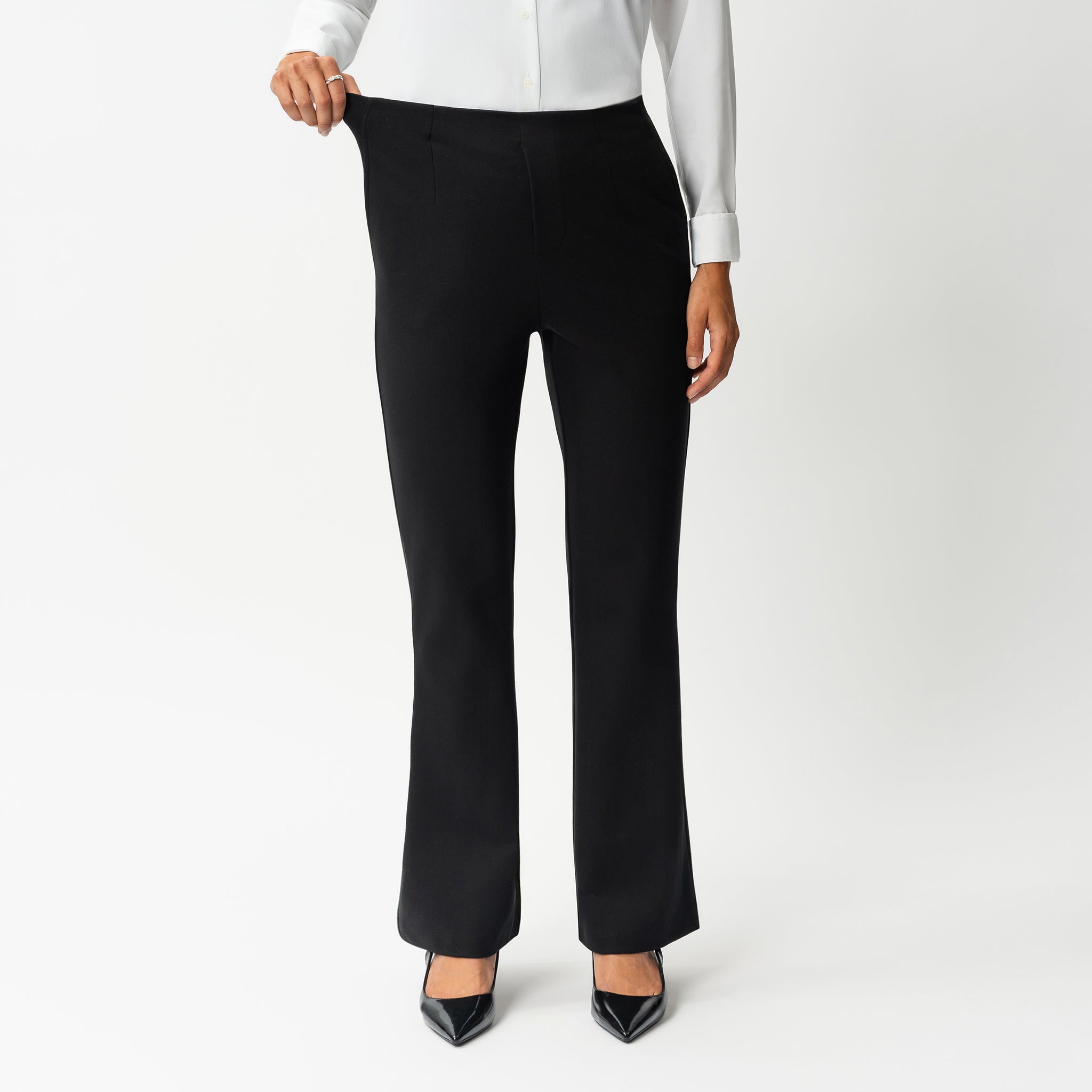Discover the perfect blend of style and comfort with our tailor-inspired bootcut trousers. Featuring an invisible waistband and refined dart details and sleek pocketless design, these trousers are crafted from a luxurious double-knit fabric that is both heavy and soft, with a touch of stretch for all-day comfort. Ideal for any occasion, they offer a sophisticated look without compromising on ease.